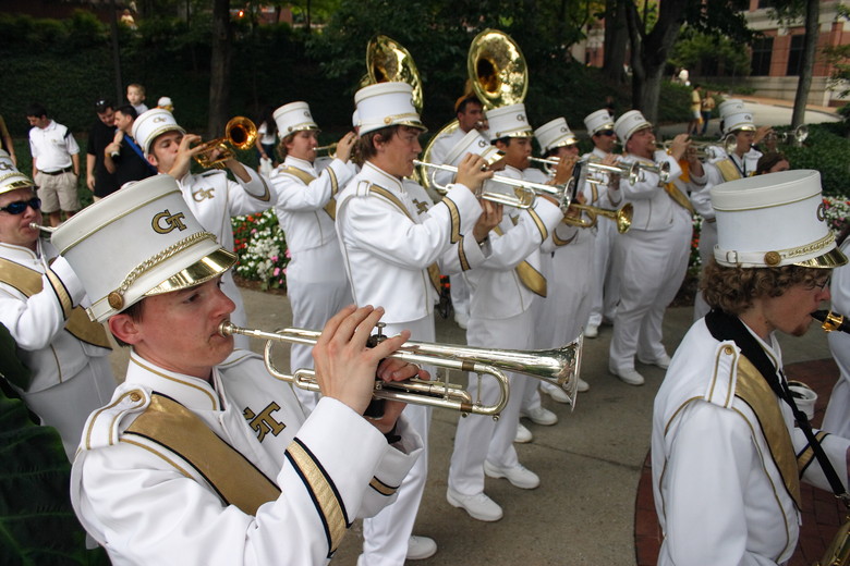 The band plays for alumni at the official pregame tailgating party.
